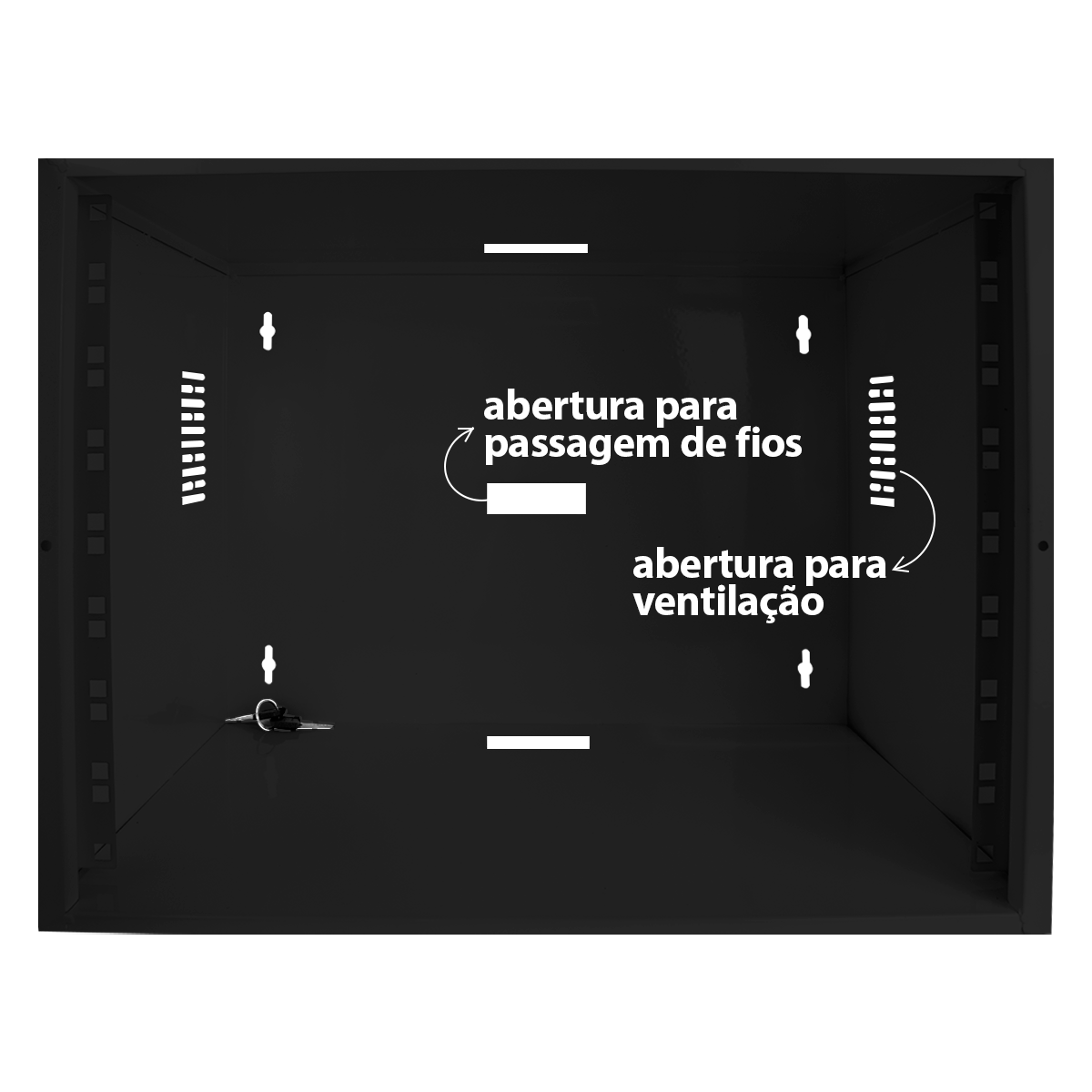 • Ventilação lateral e aberturas para passagem de fios;